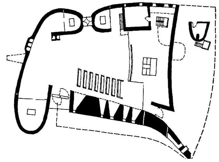 Na prikazanome tlocrtu znakom $X$ označite mjesto s kojega je snimljen prikazani detalj vanjštine građevine.