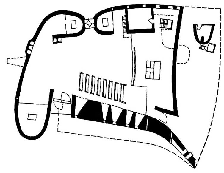 Na prikazanome tlocrtu znakom $X$ označite mjesto s kojega je snimljen prikazani detalj vanjštine građevine.