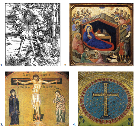 Svaki prikazani likovni primjer povežite s odgovarajućom ikonografskom odrednicom.
