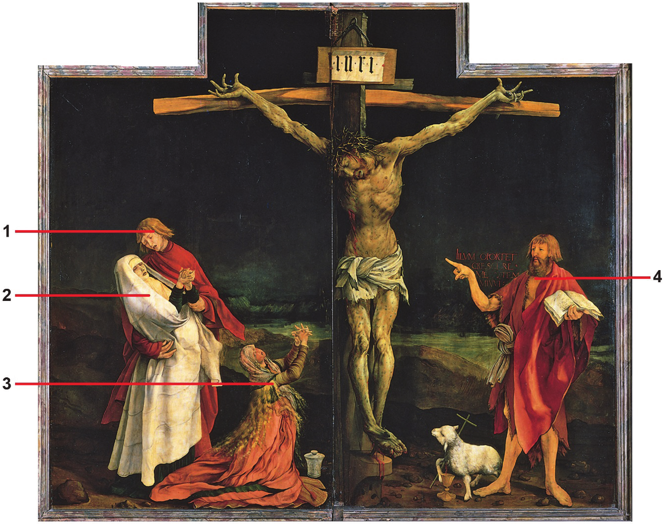 Pozorno promotrite likovni primjer i svaki lik označen brojevima od 1 do 4 povežite s odgovarajućim imenom.