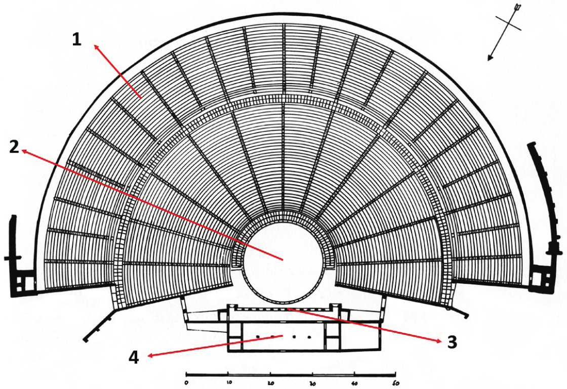 17. Pozorno promotrite prikazani tlocrt i svaki dio tlocrta označen brojevima od 1 do 4 povežite s odgovarajućim nazivom.
