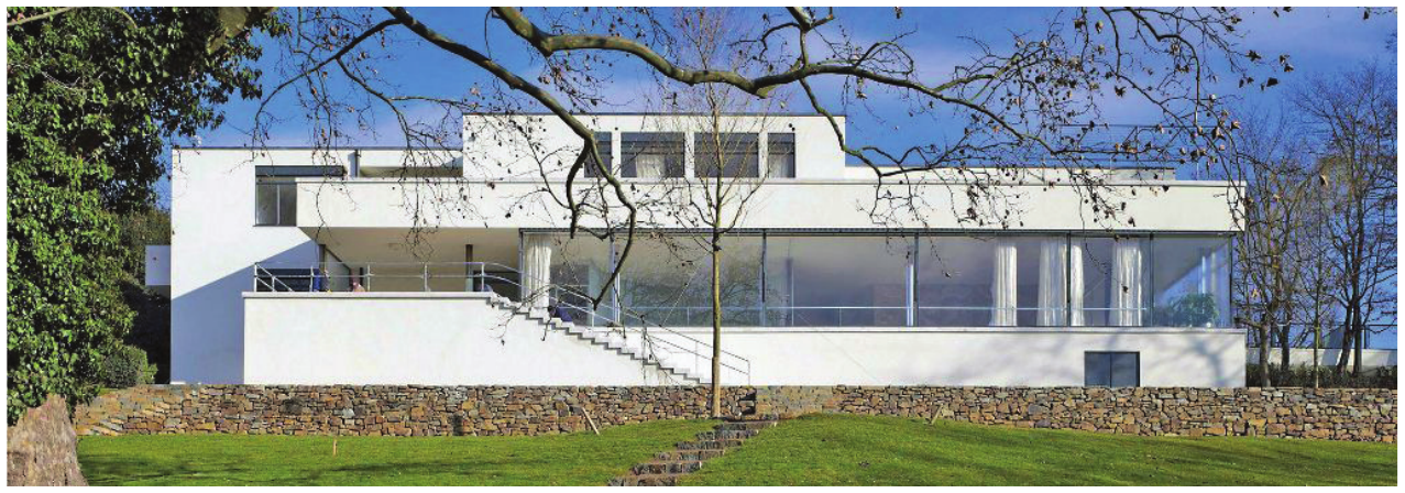 B. kombinacija glatkih površina zida i velikih staklenih površina