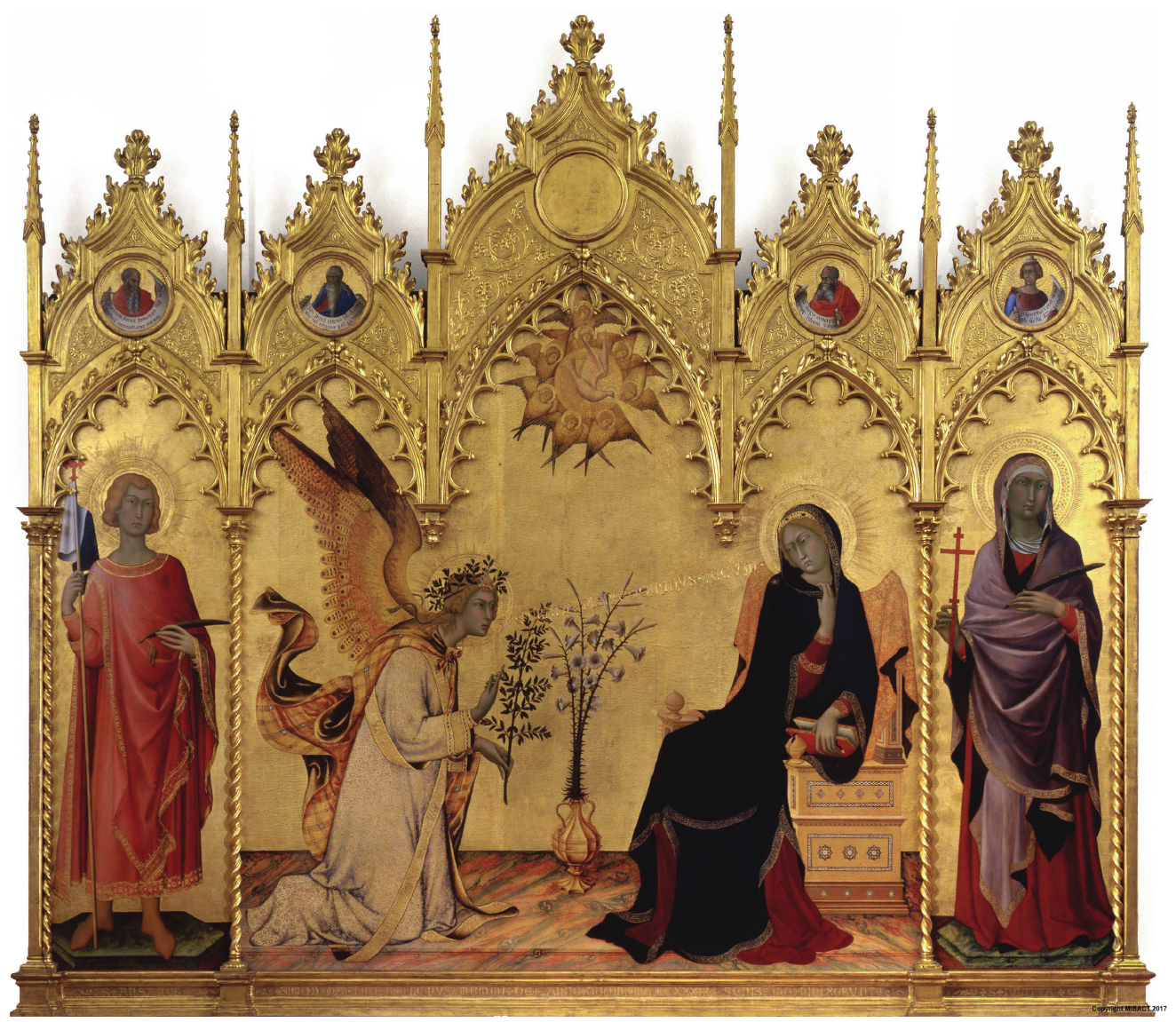 C. Likovi svetaca u bočnim poljima nužni su za razumijevanje središnjega prizora.