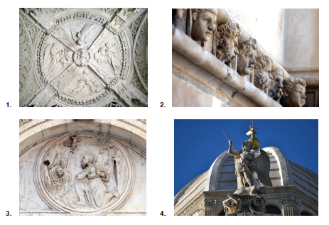 Svaku prikazanu skulpturu povežite s odgovarajućim dijelom građevine na kojemu se nalazi.
