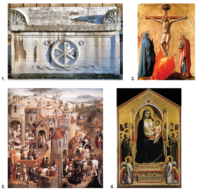 Svaki prikazani likovni primjer povežite s odgovarajućom ikonografskom odrednicom.