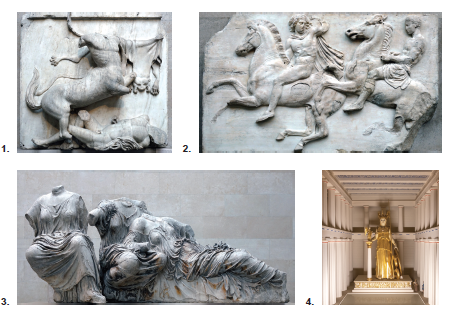 Svaku prikazanu skulpturu iz Partenona povežite s odgovarajućim arhitektonskim elementom.