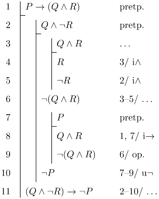 U sljedećem dokazu provedenom naravnom (prirodnom) dedukcijom odredite što treba pisati u dijelovima koji su označeni trima točkicama (...).