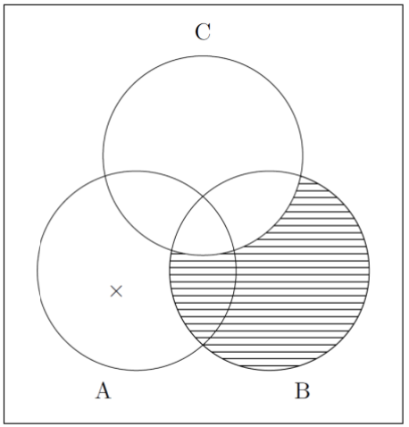 Dopunite sud koji opisuje odnos koji vrijedi među pojmovima $A$ i $B$ na temelju zadanihsudova, tj. iščitajte taj sud iz popunjenoga dijagrama.