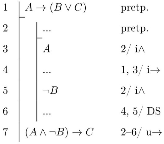U sljedećemu dokazu provedenom naravnom (prirodnom) dedukcijom odredite sudove kojinedostaju u redcima u kojima su upisane tri točkice (...), a koji dokaz u cjelini čine točnim.