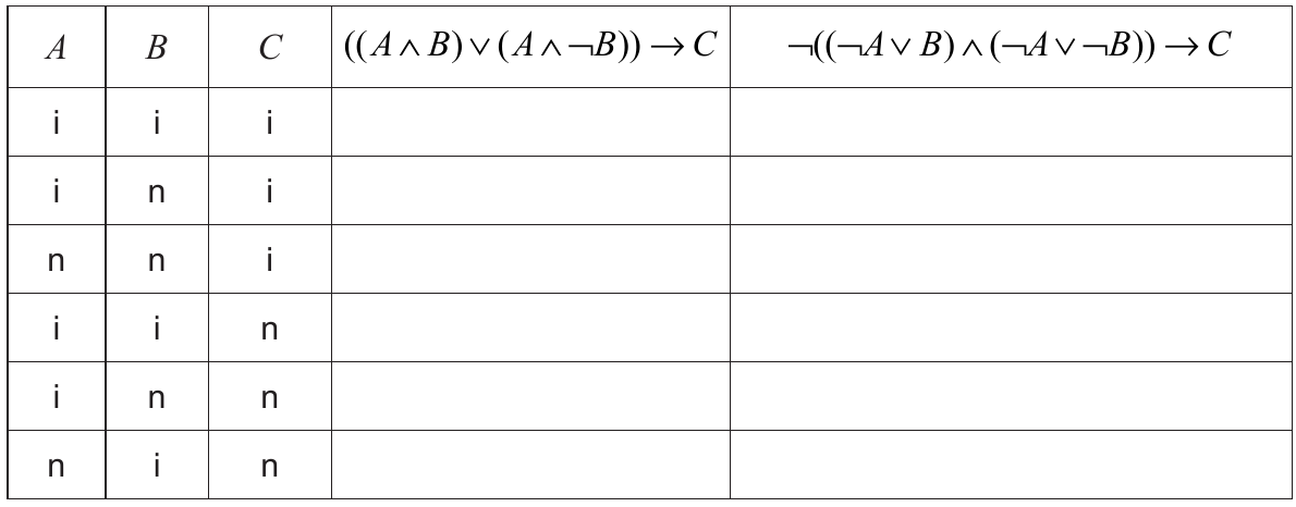 U istinosne tablice upišite samo konačnu vrijednost istinitosti sudova za svako traženo tumačenje.