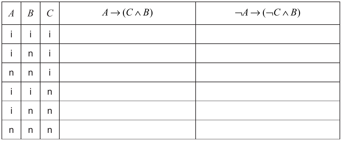 U istinosne tablice upišite samo konačnu vrijednost istinitosti sudova za svako traženo tumačenje.