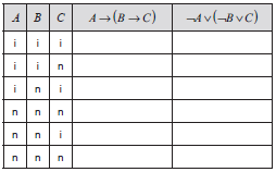 U istinosne tablice upišite samo konačnu vrijednost istinitosti sudova za svako traženo tumačenje.