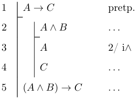 U sljedećemu dokazu provedenom naravnom (prirodnom) dedukcijom odredite sudove koji nedostaju u redcima u kojima su upisane tri točkice (...), a koji dokaz u cjelini čine točnim.