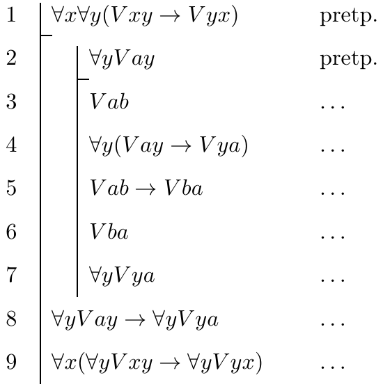 U sljedećemu dokazu provedenom naravnom (prirodnom) dedukcijom odredite opravdanja koja nedostaju u redcima u kojima su upisane tri točkice (...).