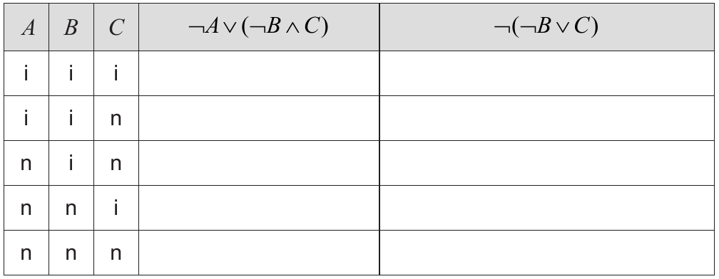 U istinosne tablice upišite samo konačnu vrijednost istinitosti sudova za svako traženo tumačenje.