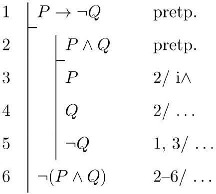 U sljedećem dokazu provedenom naravnom (prirodnom) dedukcijom odredite koja se pravila primjenjuju u koracima u kojima su opravdanja nepotpuna.