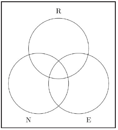 Simboli za pojmove: $N$ za vrste koje danas ne žive na ograničenome prostoru $R$ za relikte $E$ za endeme.