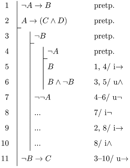 U sljedećem dokazu provedenom naravnom (prirodnom) dedukcijom odredite sudove koji nedostaju u redcima u kojima su upisane tri točkice (...), a koji dokaz u cjelini čine točnim.