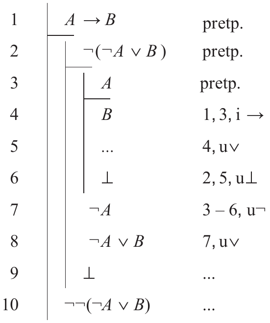 U sljedećemu dokazu provedenom naravnom (prirodnom) dedukcijom odredite sudove kojinedostaju u redcima u kojima su upisane tri točkice (...), a koji dokaz u cjelini čine točnim.