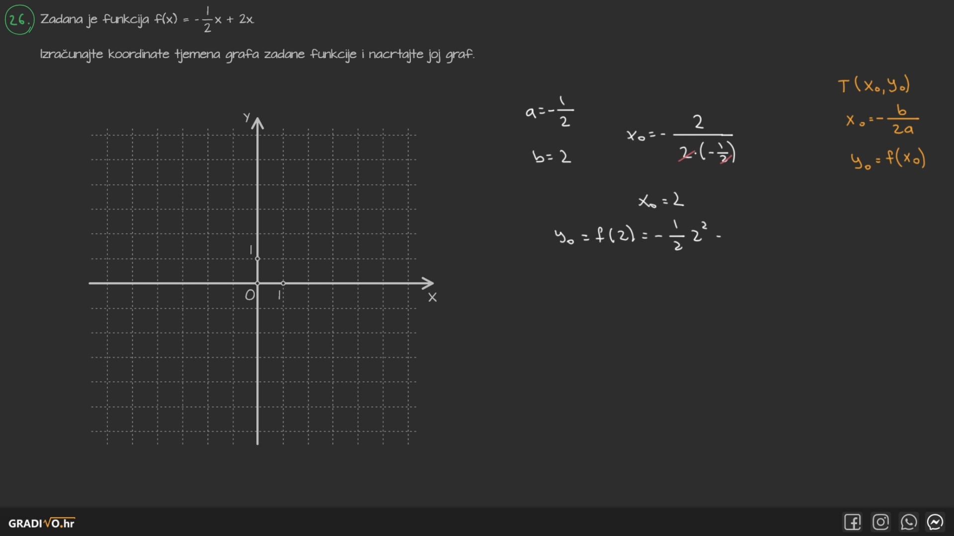Zadana je funkcija $f(x)=-\frac{1}{2} x^{2}+2 x$.