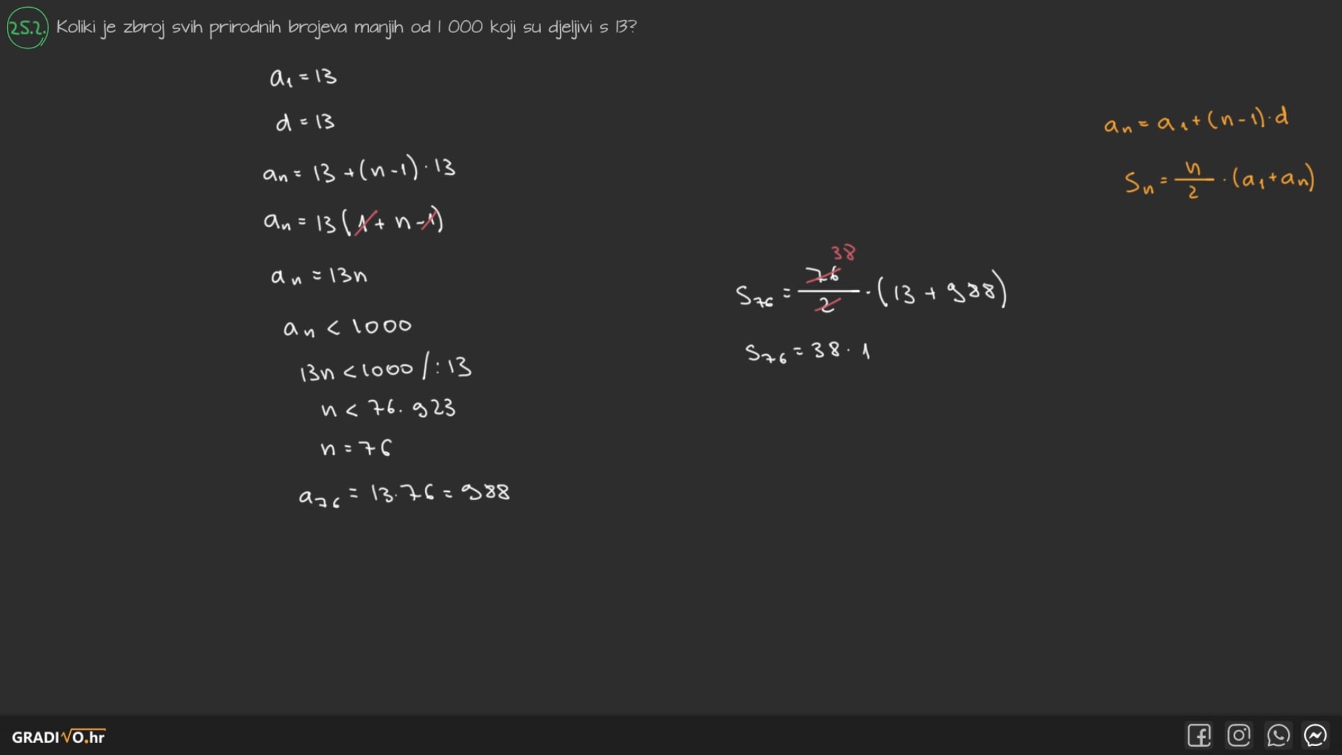 Koliki je zbroj svih prirodnih brojeva manjih od 1000 koji su djeljivi s 13?