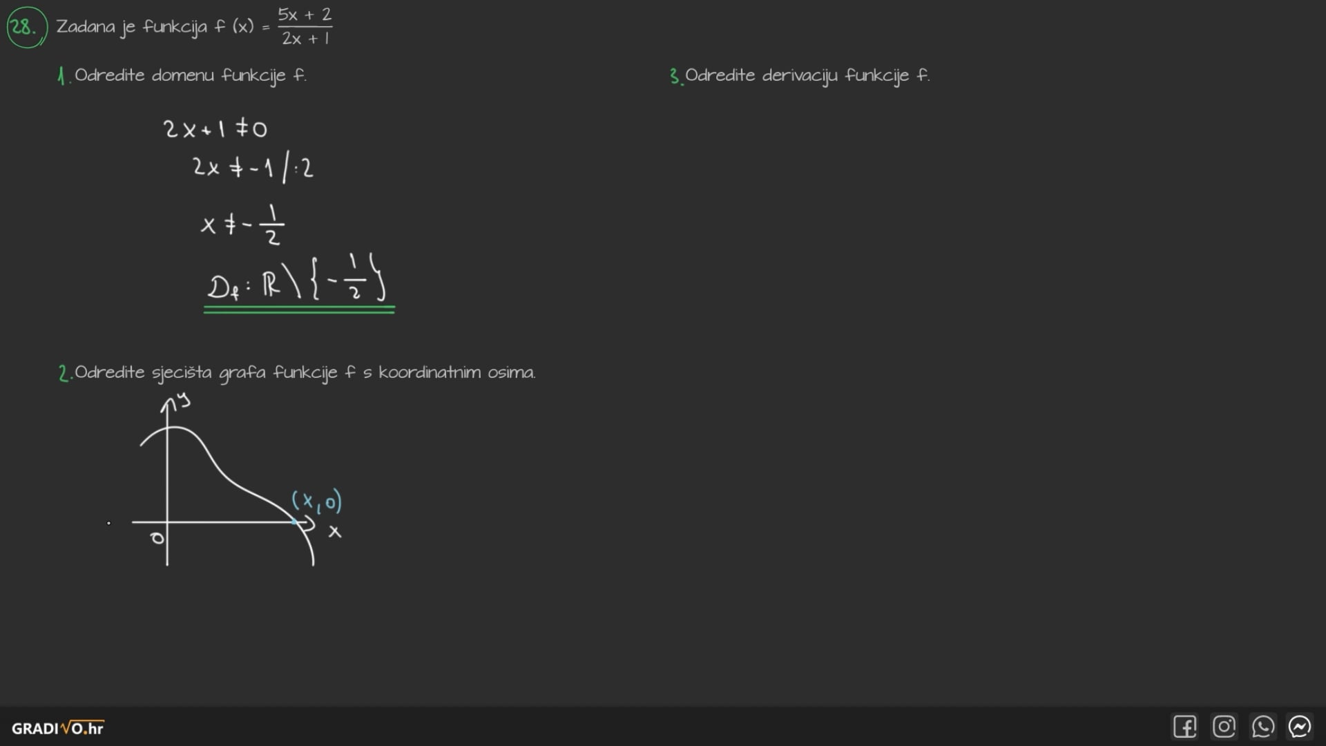 28.2. Odredite sjecišta grafa funkcije $f$ s koordinatnim osima.