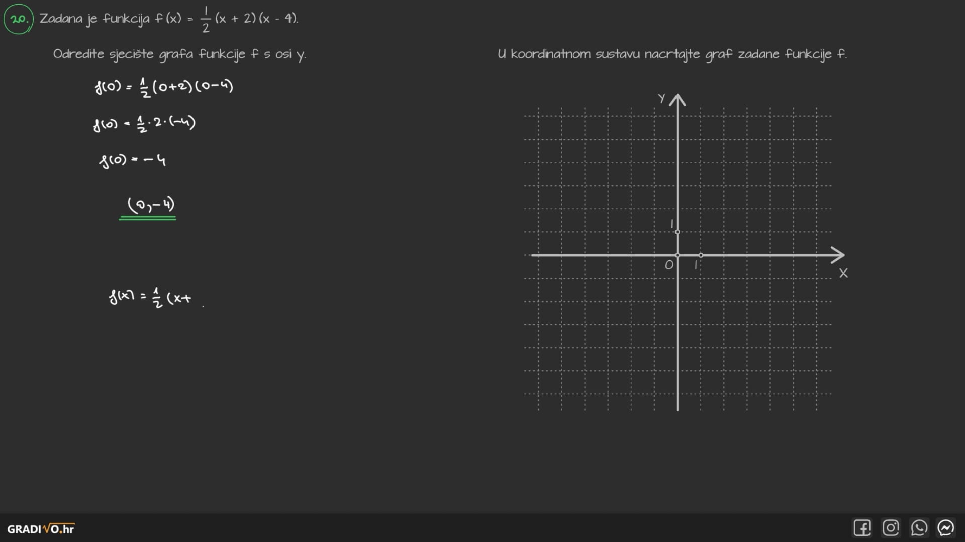 Zadana je funkcija $f(x)=\frac{1}{2}(x+2)(x-4)$.