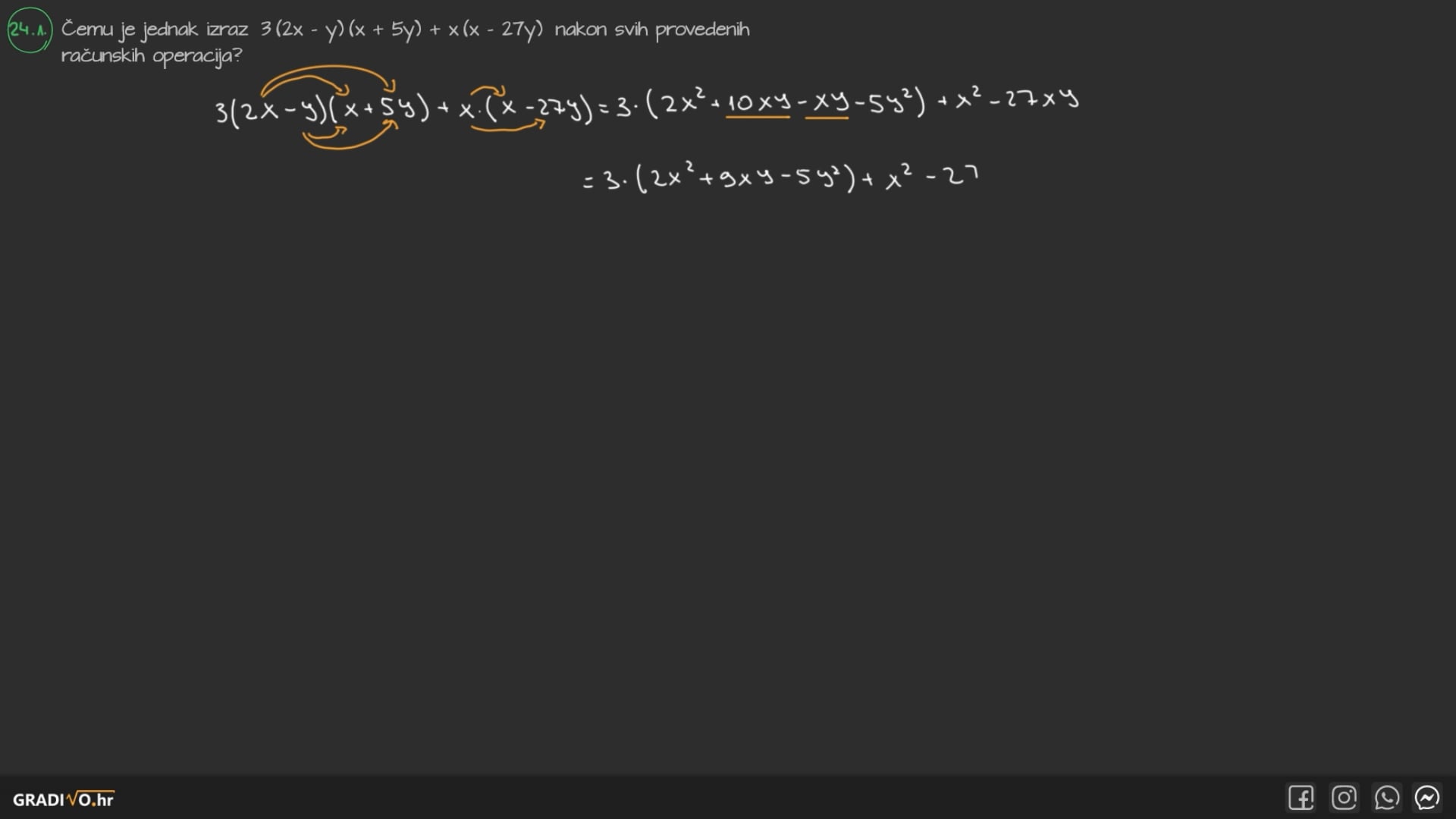 Čemu je jednak izraz $3(2 x-y)(x+5 y)+x(x-27 y)$ nakon svih provedenih računskih operacija?
