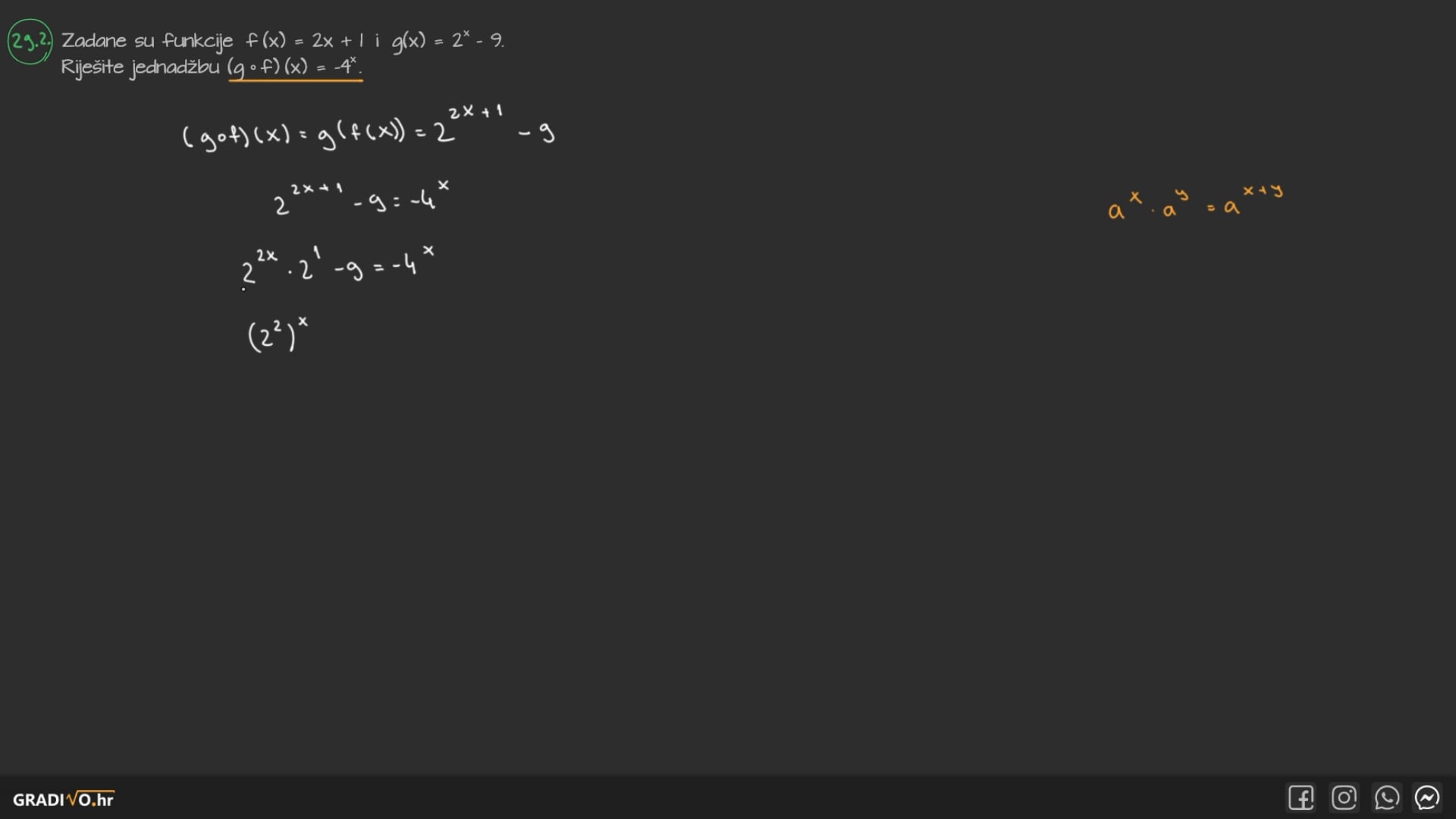 Riješite jednadžbu $(g \circ f)(x)=-4^{x}$.