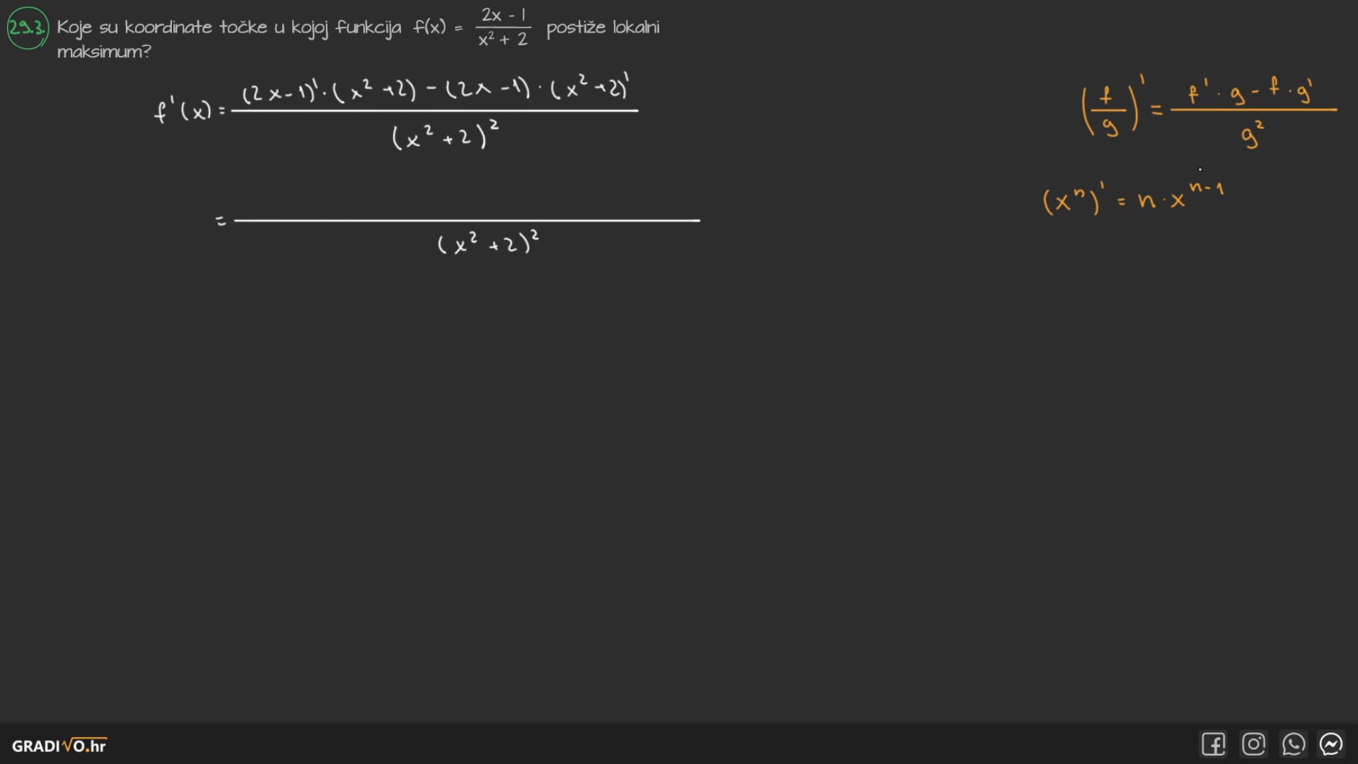 Koje su koordinate točke u kojoj funkcija $f(x)=\frac{2 x-1}{x^{2}+2}$ postiže lokalni maksimum?