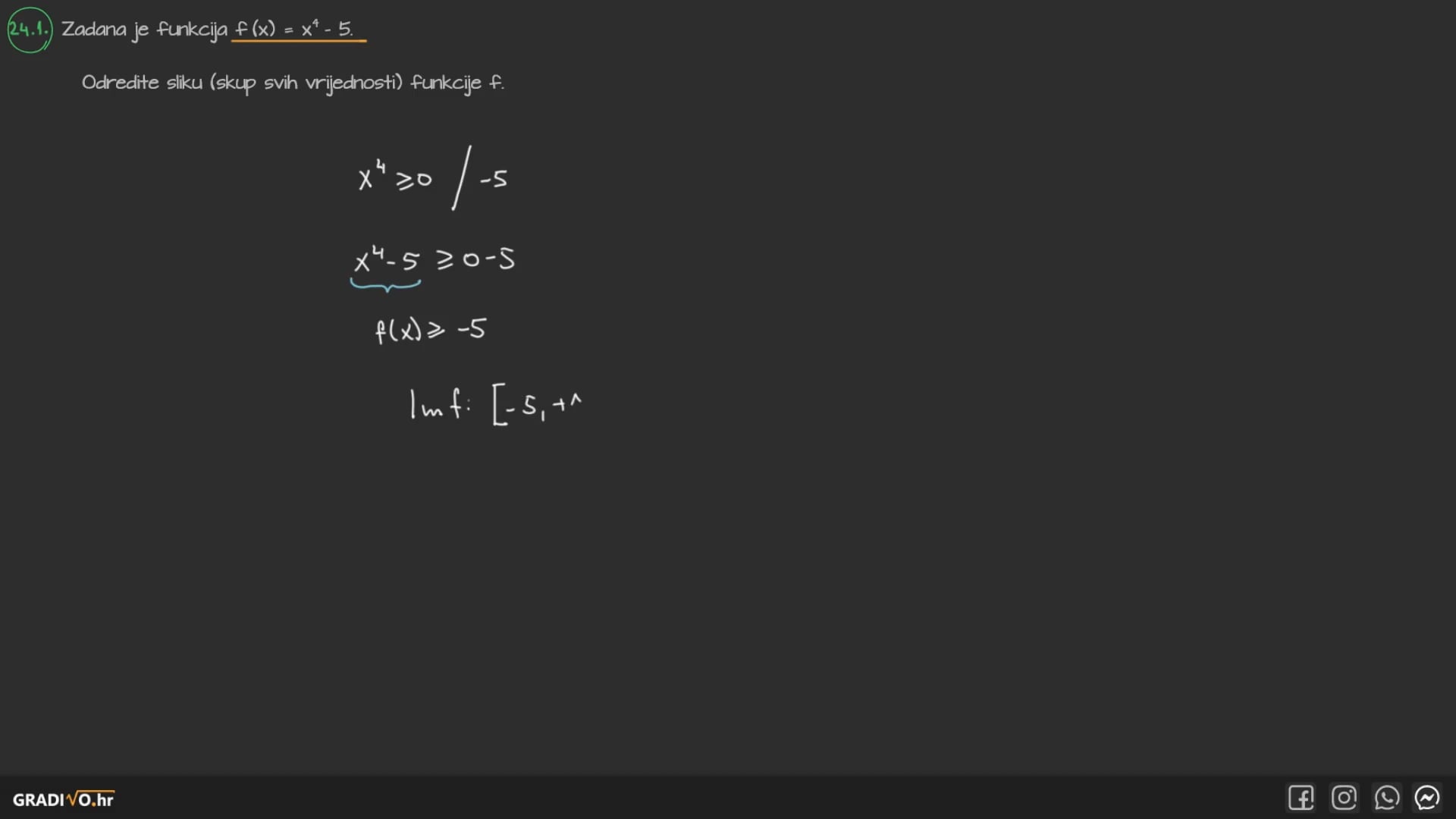 24.1. Odredite sliku (skup svih vrijednosti) funkcije $f$.