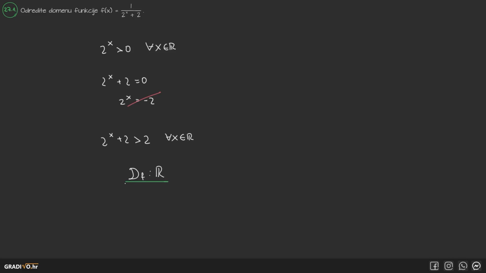 Odredite domenu funkcije $f(x)=\frac{1}{2^{x}+2}$.