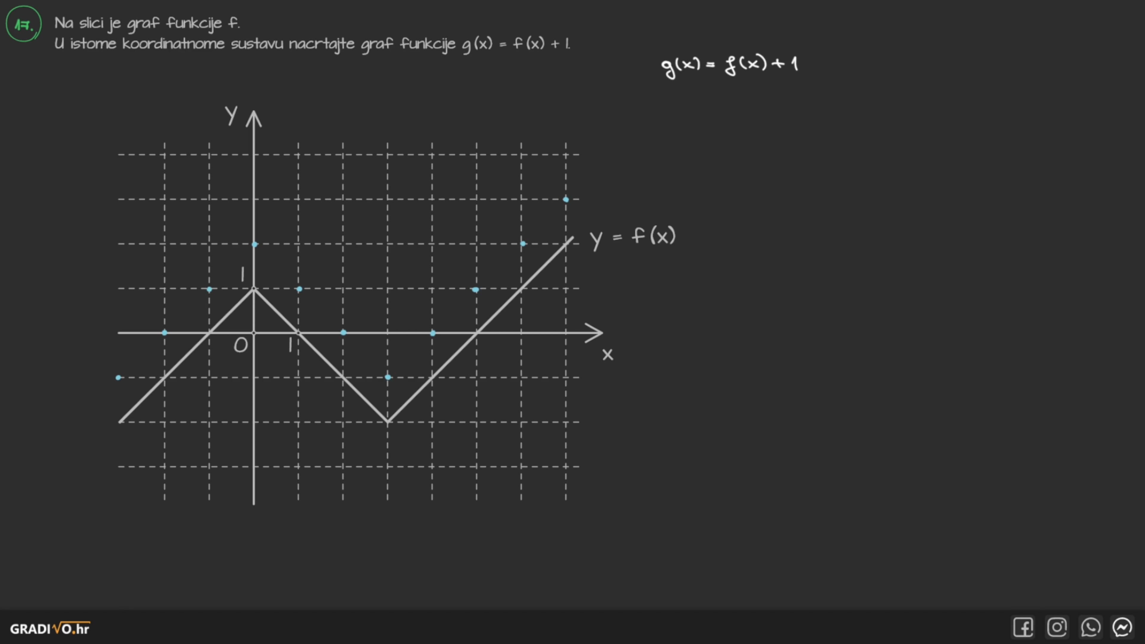 U istome koordinatnome sustavu nacrtajte graf funkcije $g$ takve da je $g(x)=f(x)+1$.