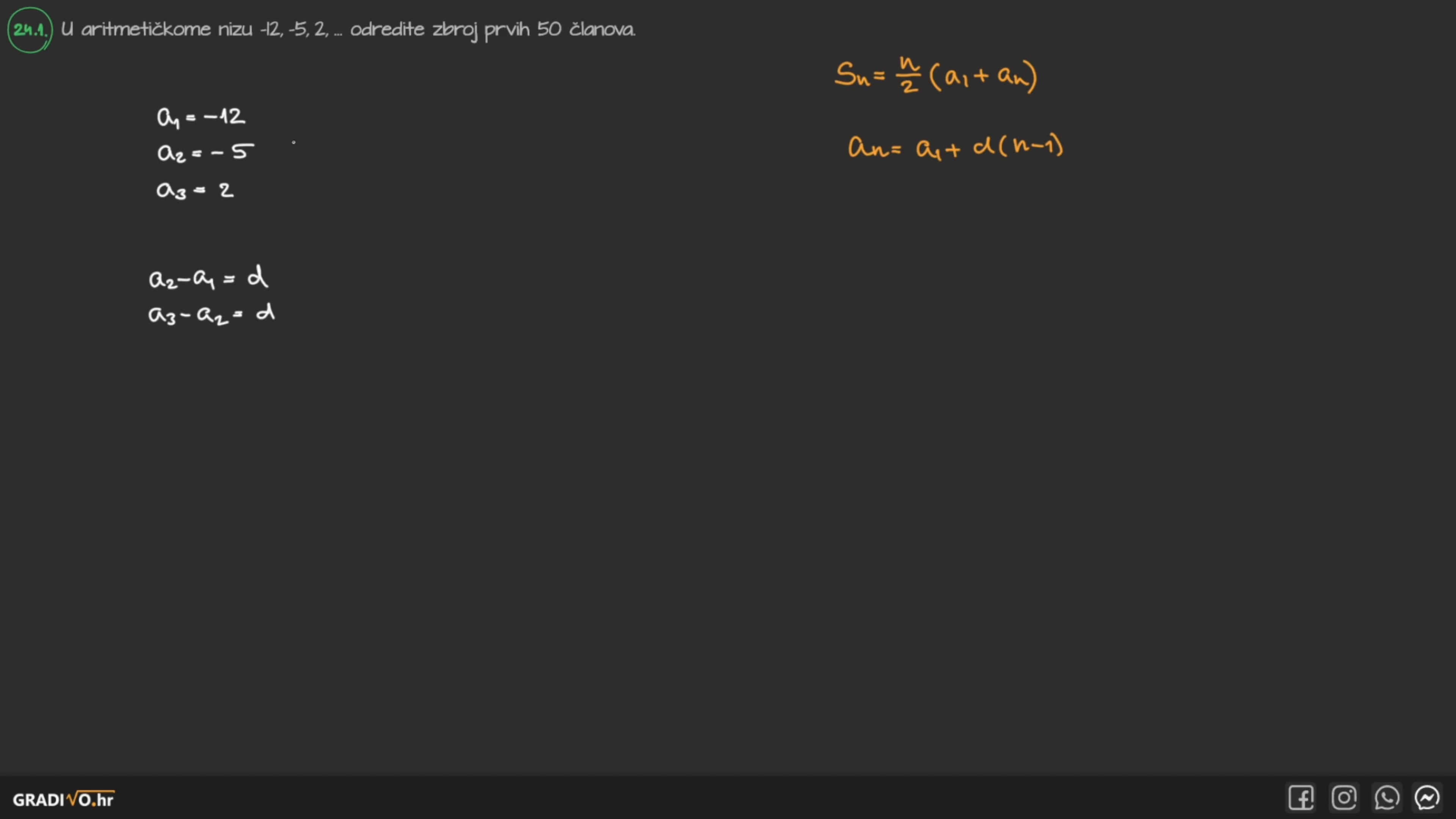 U aritmetičkome nizu $-12,-5,2, \ldots$ odredite zbroj prvih 50 članova.
