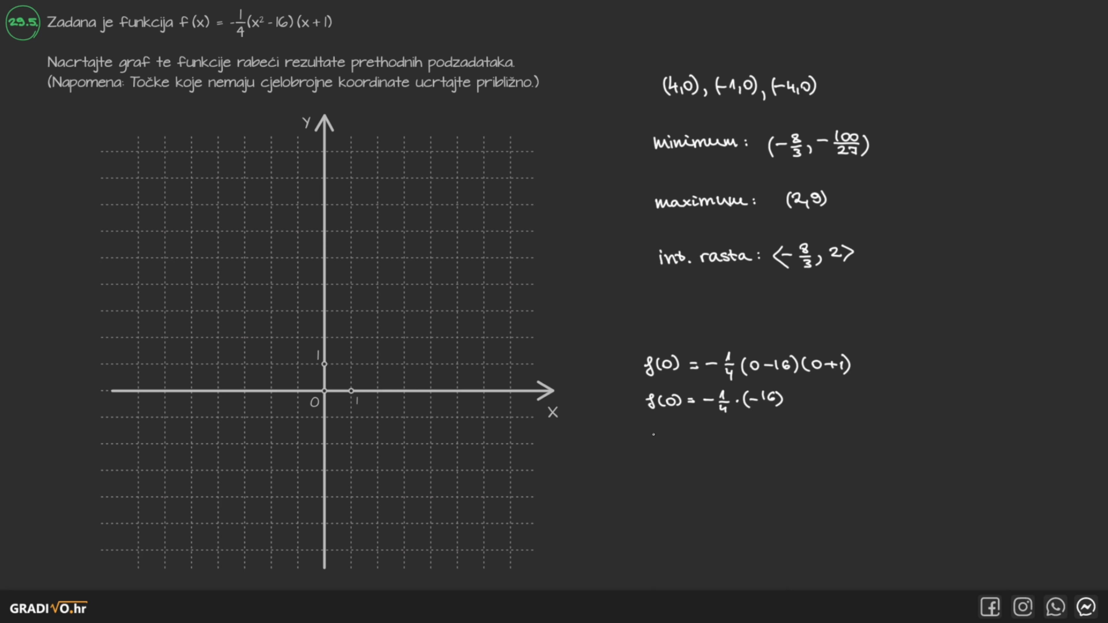 Zadana je funkcija $f(x)=-\frac{1}{4}\left(x^{2}-16\right)(x+1)$.