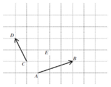 Na slici su zadani vektori $\overrightarrow{A B}, \overrightarrow{C D}$ i točka $E$. Ucrtajte točku $F$ tako da je $\overrightarrow{E F}=\overrightarrow{A B}+\overrightarrow{C D}$.