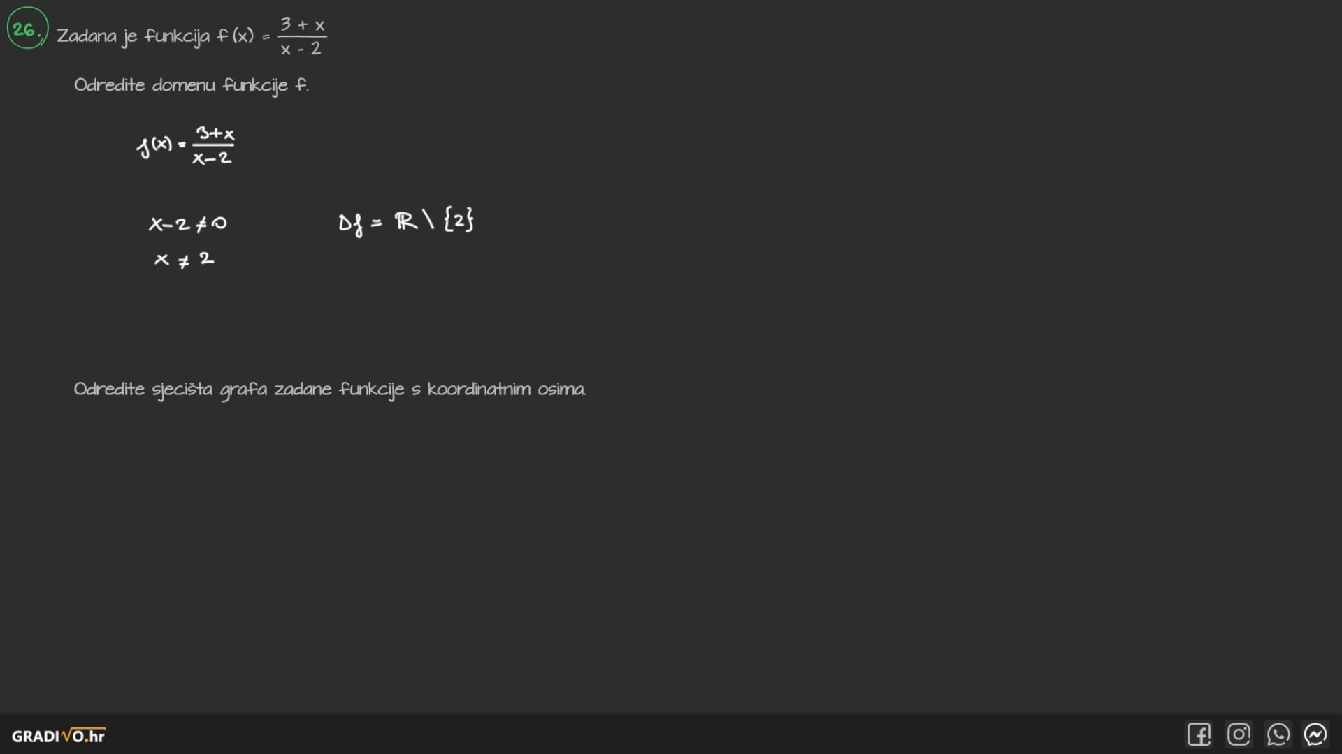 26.2. Odredite sjecišta grafa zadane funkcije s koordinatnim osima.