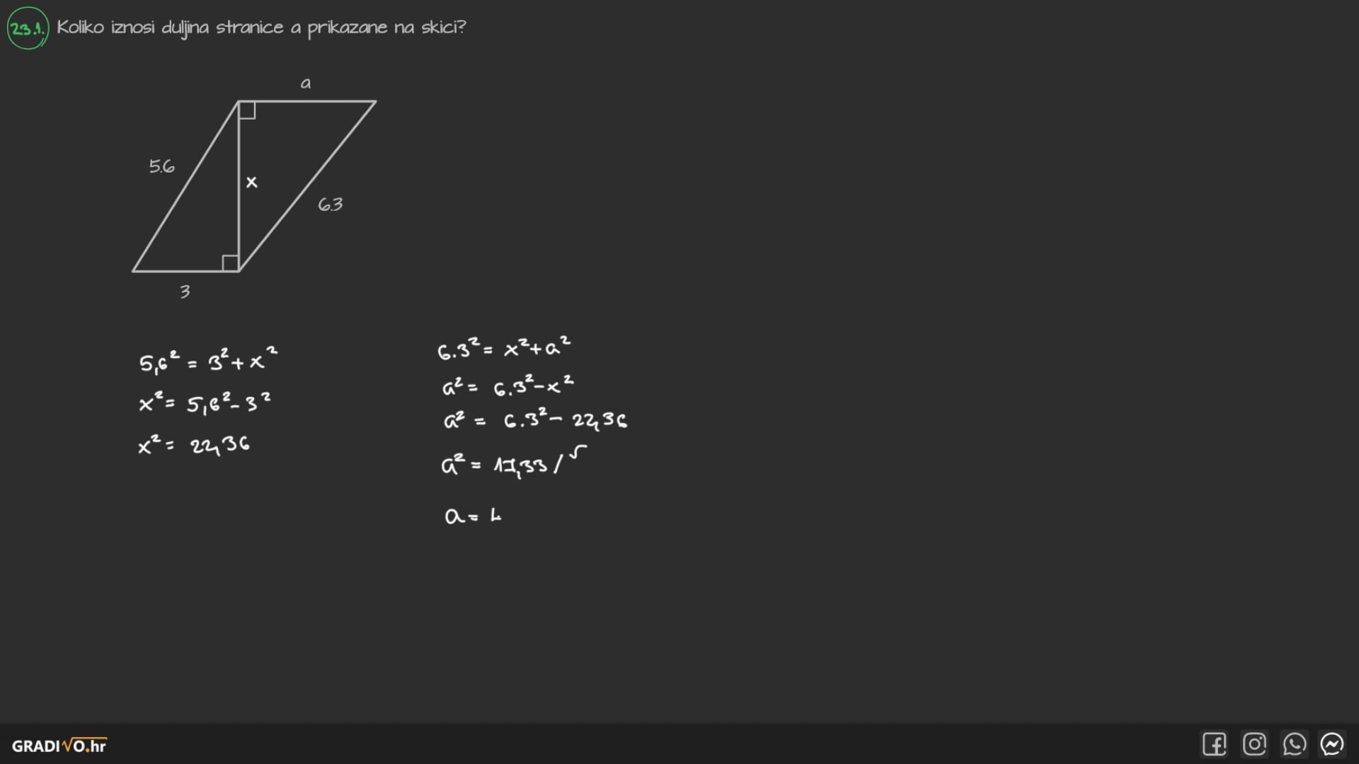 Koliko iznosi duljina stranice $a$ prikazane na skici?