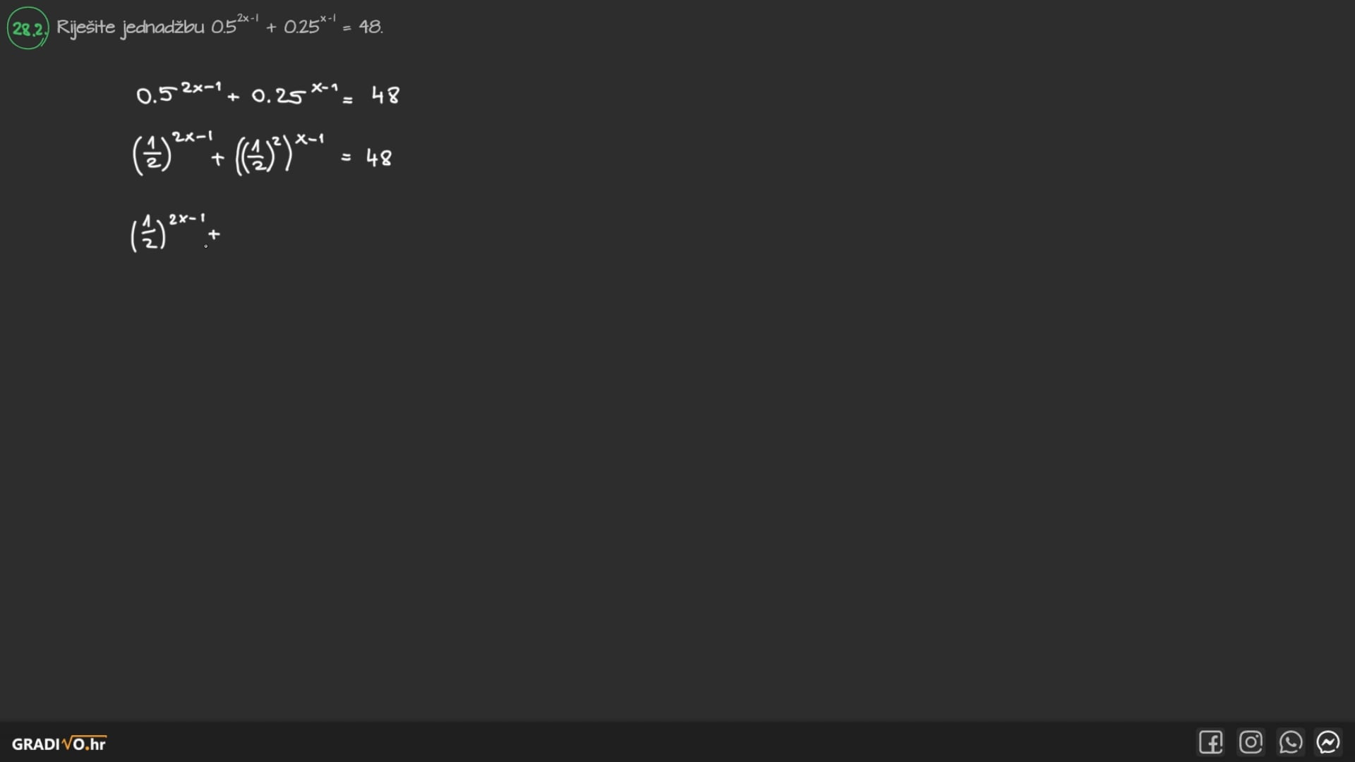 Riješite jednadžbu $0.5^{2 x-1}+0.25^{x-1}=48$.