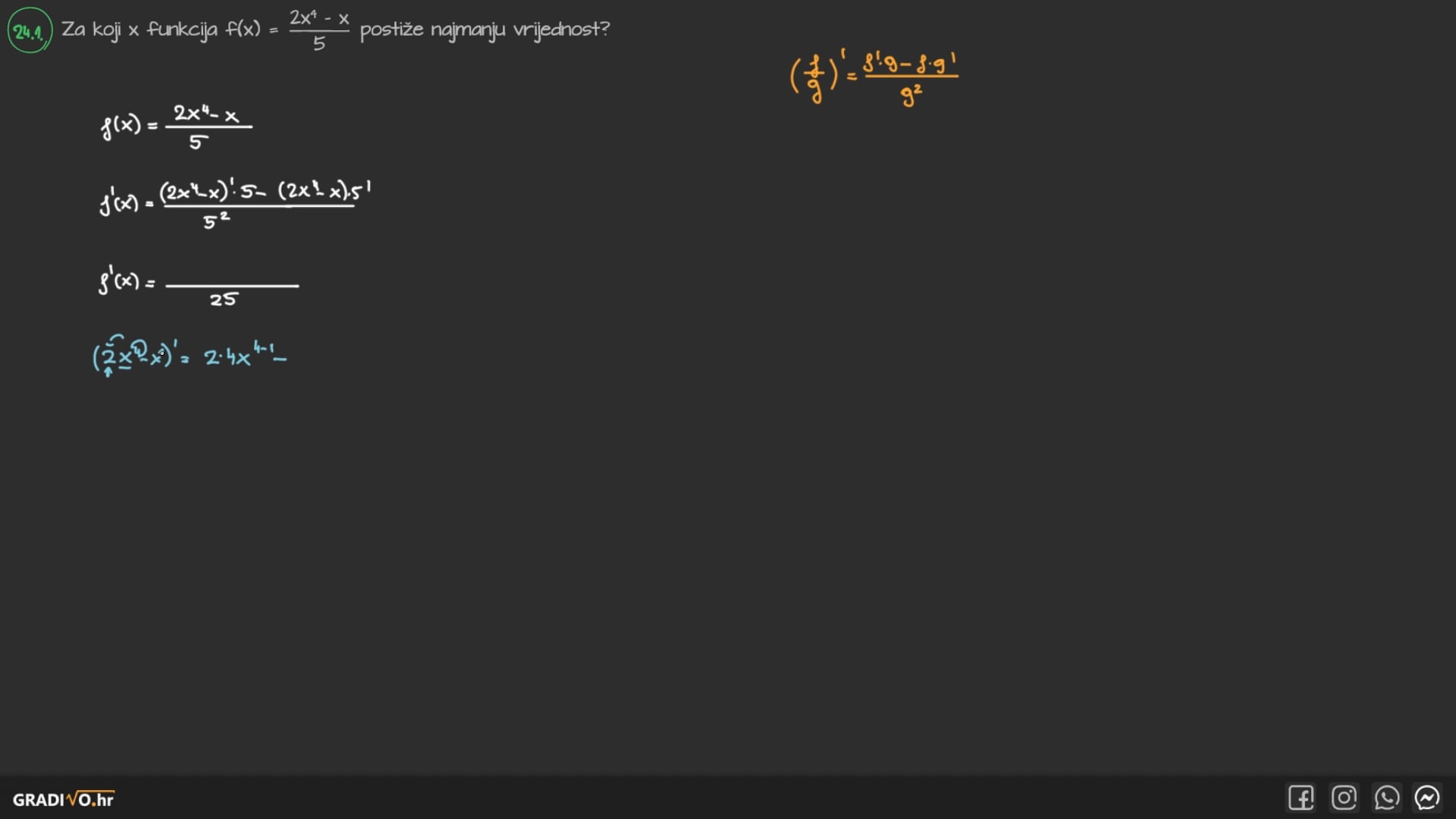 Za koji $x$ funkcija $f(x)=\frac{2 x^{4}-x}{5}$ postiže najmanju vrijednost?