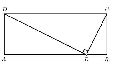 Na skici je prikazan pravokutnik $A B C D$ duljina stranica $|A B|=7 \mathrm{~cm} \mathrm{i}$ $|B C|=3 \mathrm{~cm}$. Na stranici $\overline{A B}$ bliže točki $B$ nalazi se točka $E$ tako da je $\angle C E D=90^{\circ}$. Kolika je duljina dužine $\overline{A E}$ ?