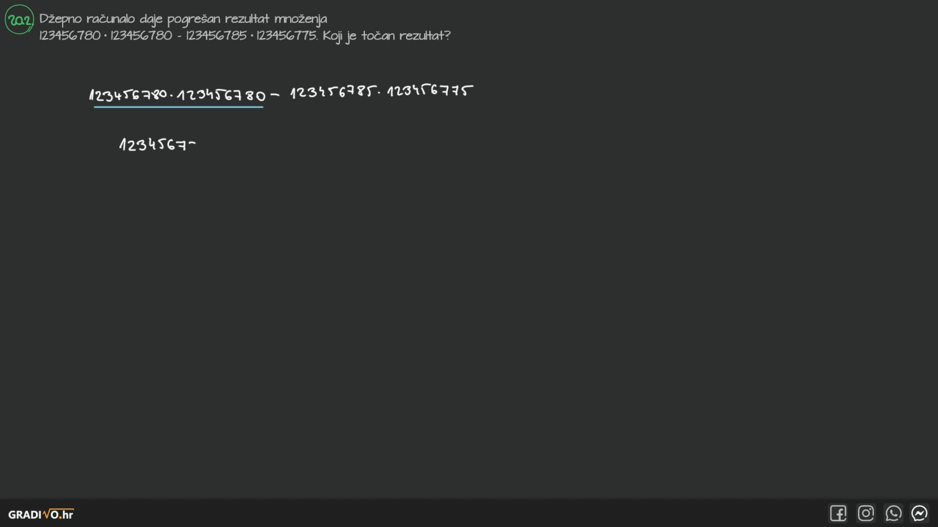 Džepno računalo daje pogrešan rezultat množenja $123456780 \cdot 123456780-123456785 \cdot 123456775$. Koji je točan rezultat?