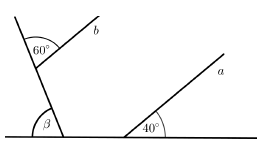 Ako su pravci a i $b$ paralelni, odredite mjeru kuta $\beta$ prikazanoga na skici.