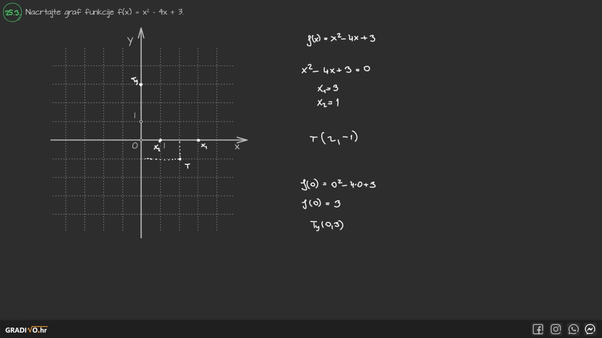 Nacrtajte graf funkcije $f(x)=x^{2}-4 x+3$.