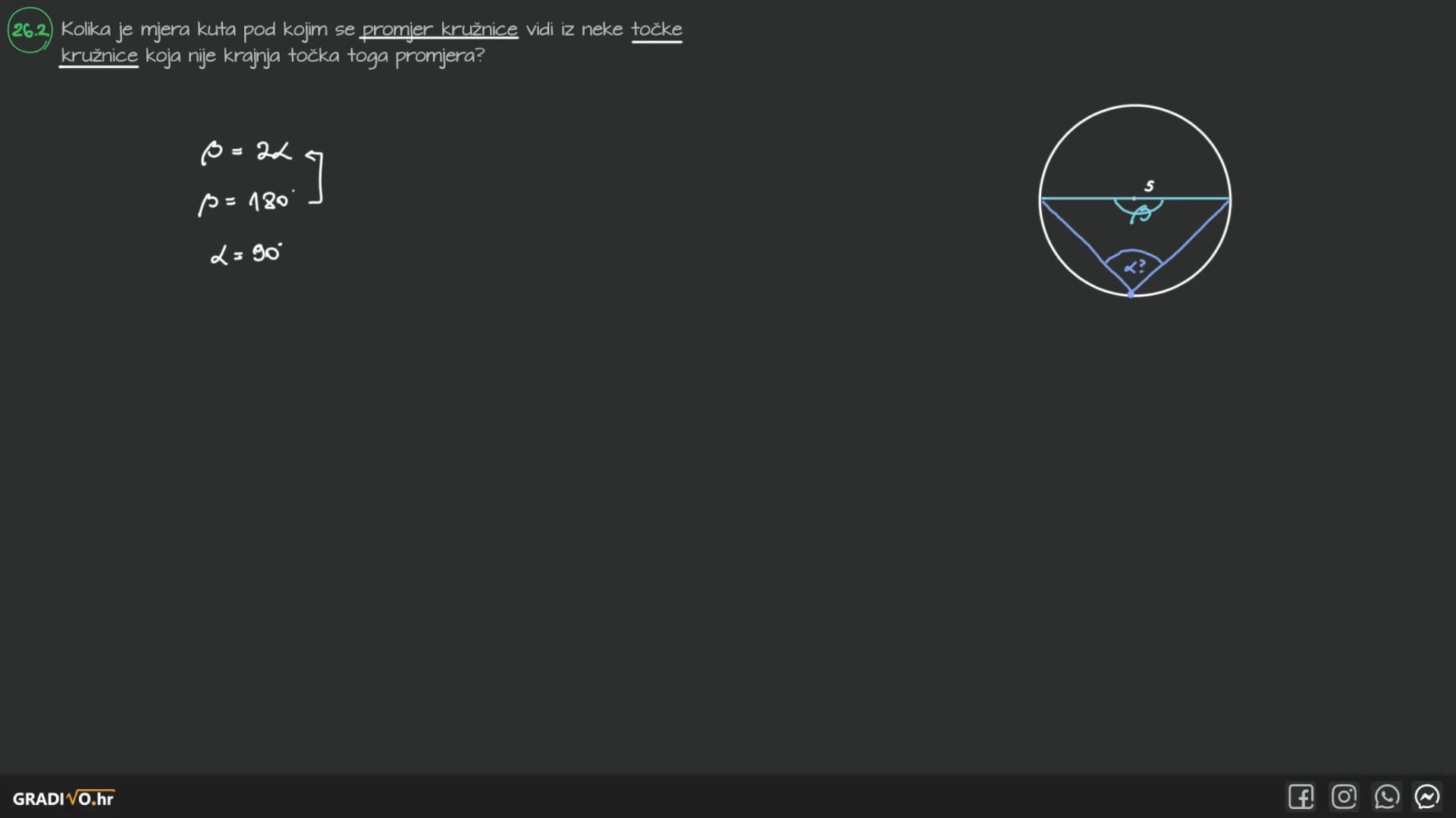 Kolika je mjera kuta pod kojim se promjer kružnice vidi iz neke točke kružnice koja nije krajnja točka toga promjera?