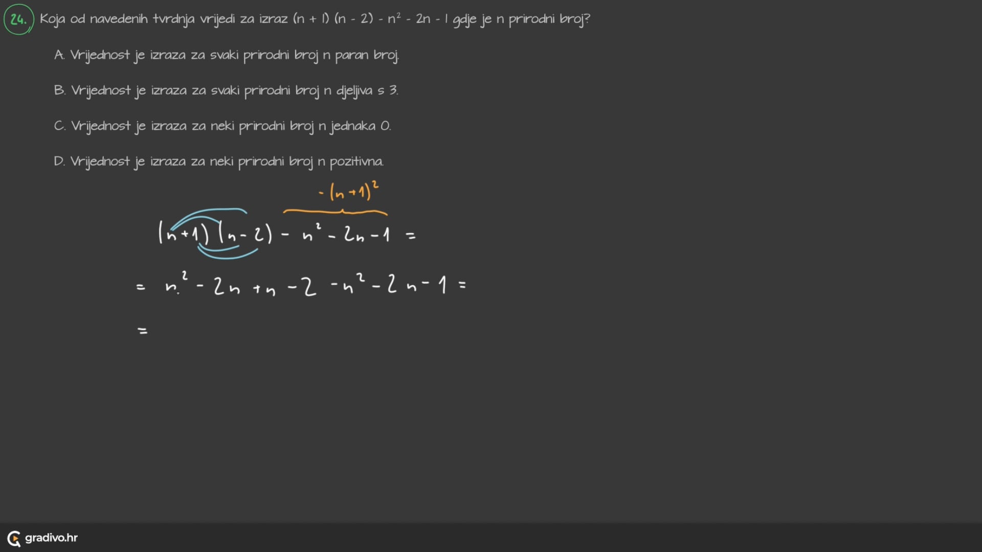 D. Vrijednost je izraza za neki prirodni broj $n$ pozitivna.