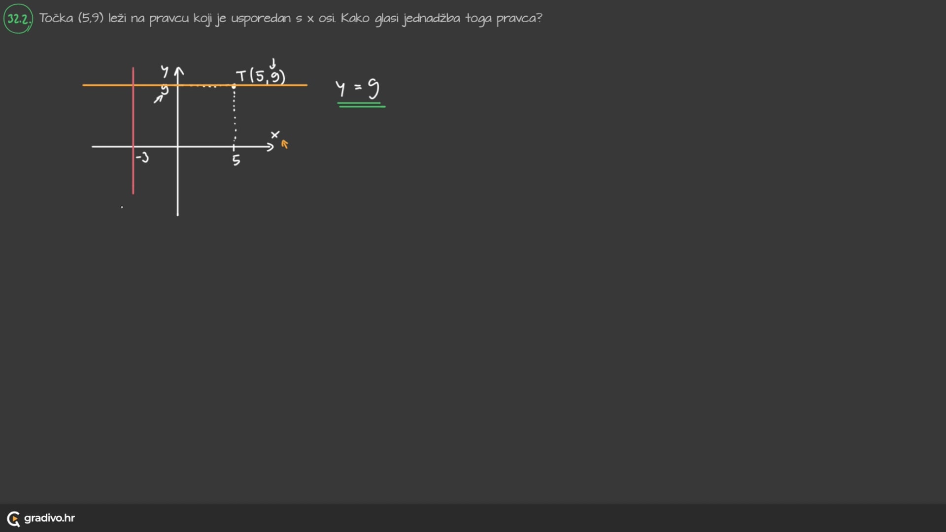 Točka (5,9) leži na pravcu koji je usporedan s x osi. Kako glasi jednadžba toga pravca?