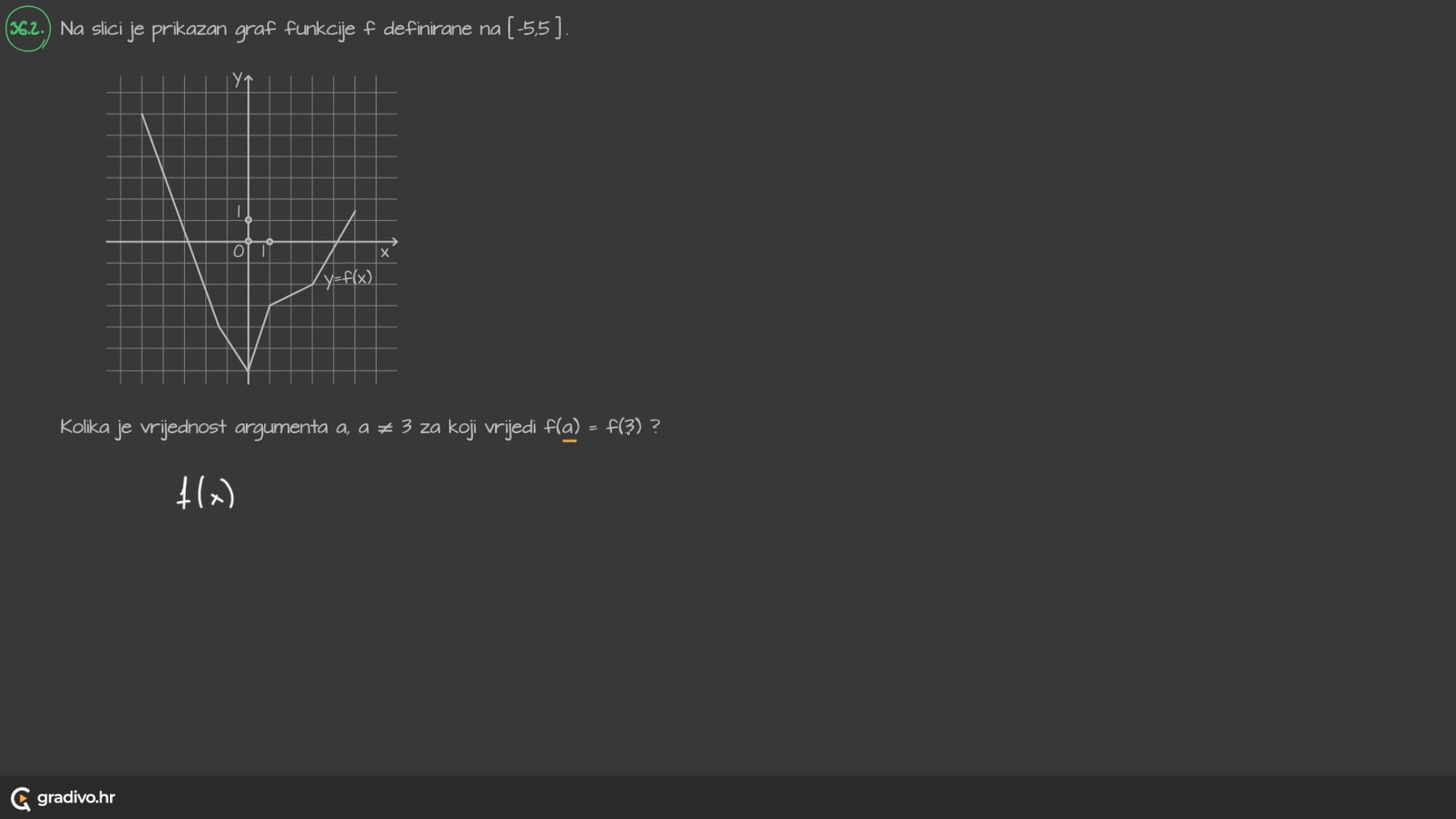 Kolika je vrijednost argumenta $a$, $a \neq 3$ za koji vrijedi $f(a)=f(3)$ ?