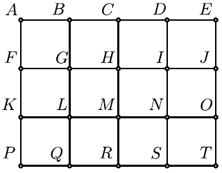 Vektor \(\vec{x}=\frac{1}{2}(\overrightarrow{A L}-\overrightarrow{N P}+\overrightarrow{J C})\) određen je točkama prikazanima u kvadratnoj mreži na slici. Koji je od navedenih vektora jednak vektoru \(\vec{x}\) ?