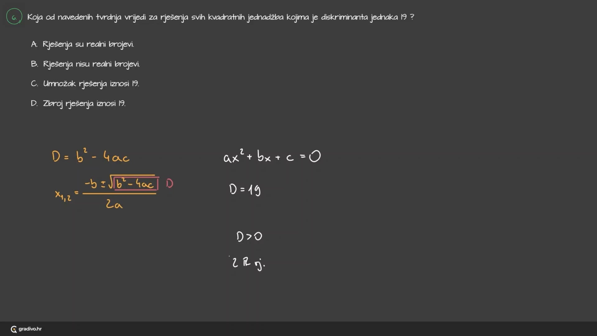 D. Zbroj rješenja iznosi 19.